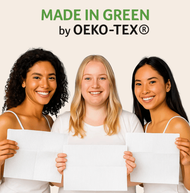 Our Dry Wipes are MADE IN GREEN by OEKO-TEX®, meaning every wipe is crafted with skin-safe, non-toxic, and eco-friendly fibers. A trusted choice for daily skincare, gentle cleansing, and sustainable living.