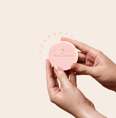 The round eco bar design fits comfortably joyfully in your hand. Glide Marigold Glow directly onto wet skin, or rub the bar between your hands for a cloud of lather. Gentle enough for daily face and body care.