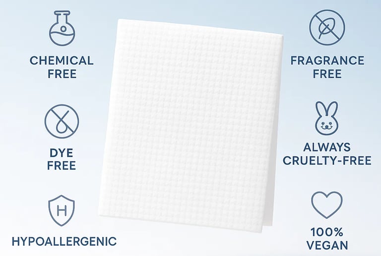 Experience the gentle touch of Our Face Towels, designed to keep your skin fresh, clean, and cared for — free from chemicals, dyes, and fragrances.