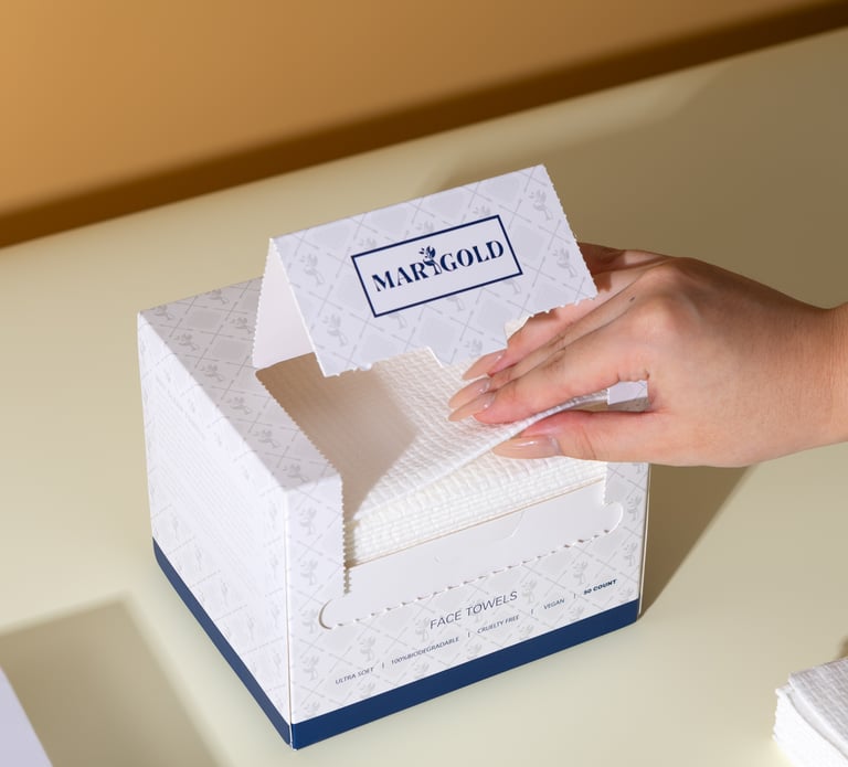 At Marigold Glow, we believe beauty should never harm the planet. Our eco-friendly face towels are made from 100% biodegradable, plant-based fibers, designed to be ultra-soft, cruelty-free, and vegan.